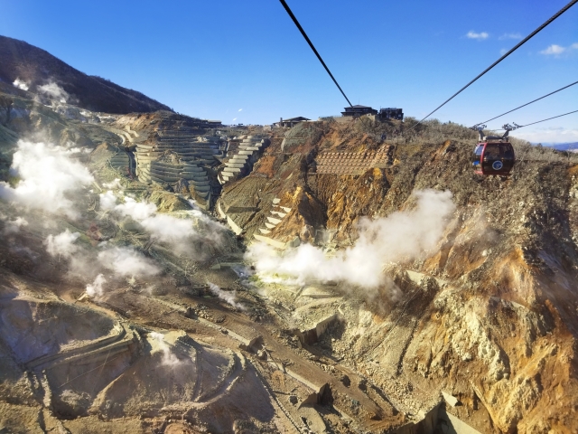 大涌谷や箱根連山を眼下に、火山の息吹を感じながら空中散歩。