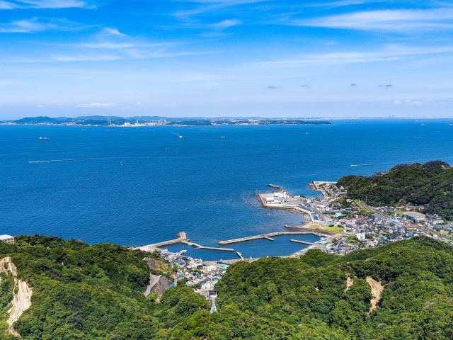 東京湾を眼下に望む鋸山ロープウェーは、短時間で山頂までアクセス可能。